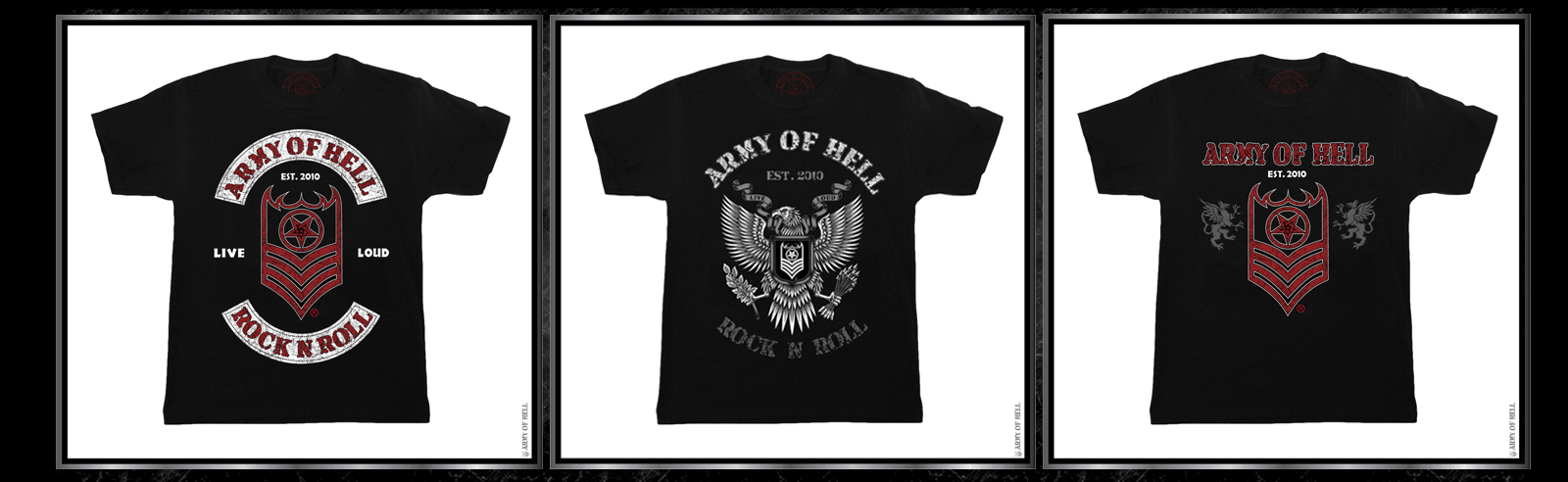 ARMY OF HELL is a trademark established in 2010, dedicated to the manufacture and marketing of shirts with high standards of quality and innovation for public lover of ROCK AND ROLL. We seek a unique design that shows individuality, thus we offer customer satisfaction.